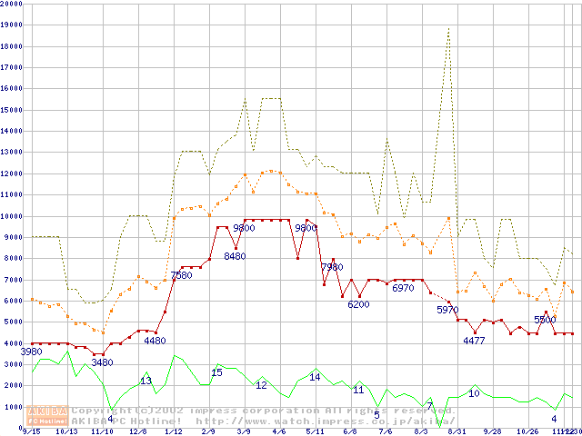 PC133 SDRAM DIMM CasLatency=3 ECC対応の最安値推移