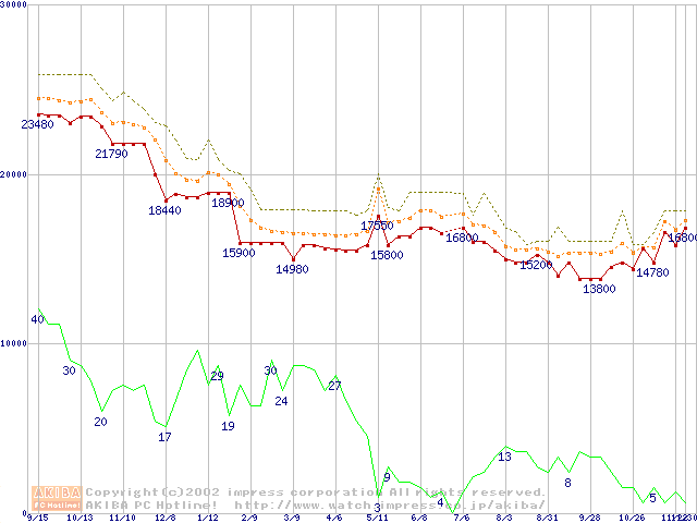 Pentium III 1B GHz FC-PGA リテールパッケージの価格推移