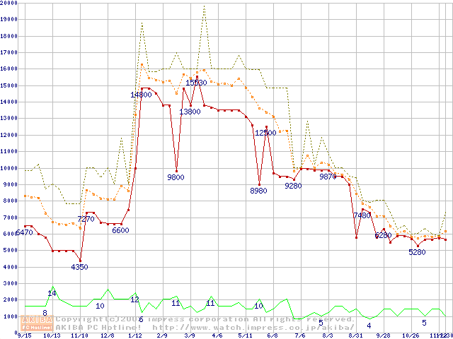 PC100 SDRAM DIMM CasLatency=2の最安値推移