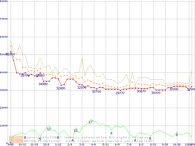 PC800-45 DRDRAM RIMM ECC対応の最安値推移
