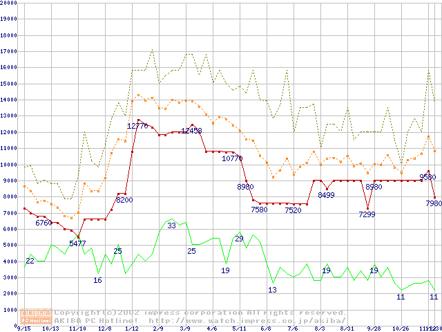 メモリ主要製品の最安値推移