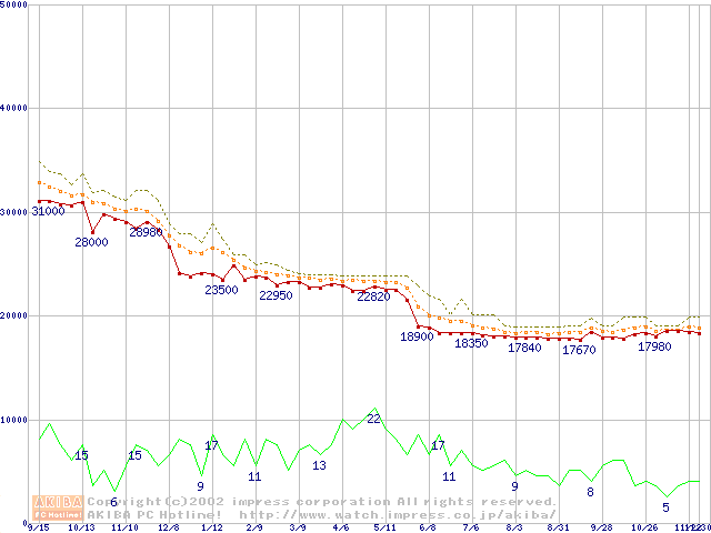 Pentium III-S 1.13GHz FC-PGA2 リテールパッケージの価格推移
