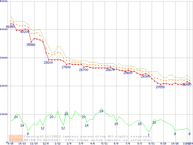Pentium III-S 1.26GHz FC-PGA2 リテールパッケージの価格推移