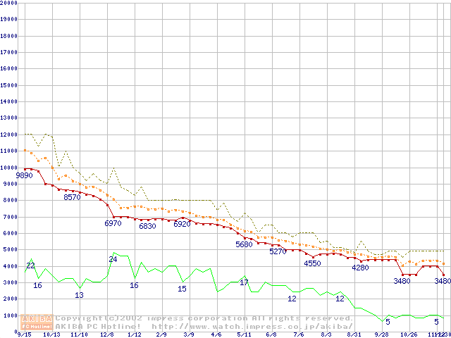 Socket A (PGA,FSB 200MHz,L2 64KB,Morgan)の最安値推移