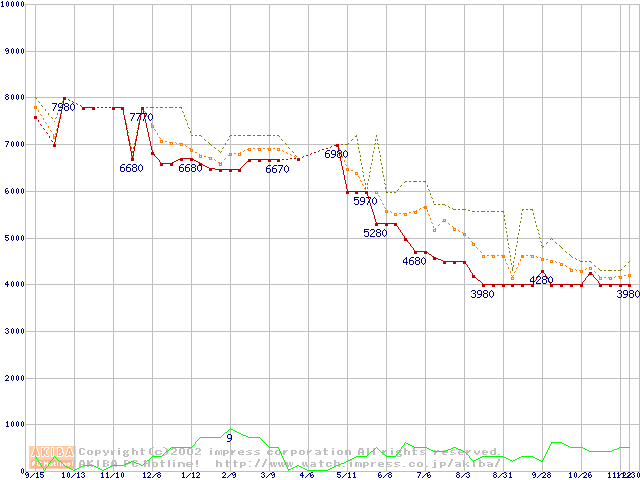 Socket 370 (PGA,FSB 133MHz,L2 64KB)の最安値推移