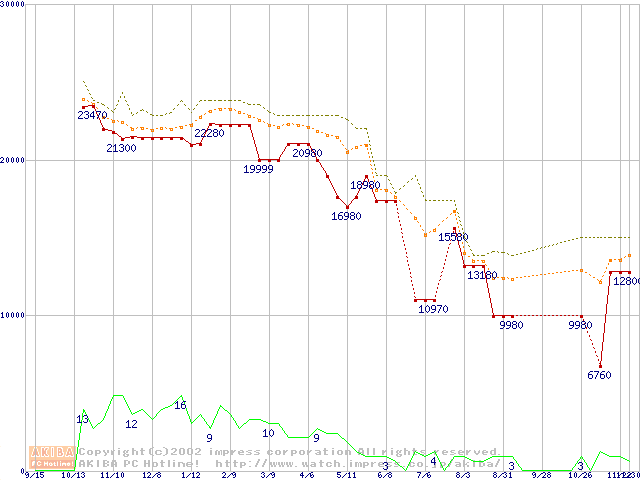 Socket A (OPGA,FSB 266MHz,L2 256KB,Palomino)の最安値推移