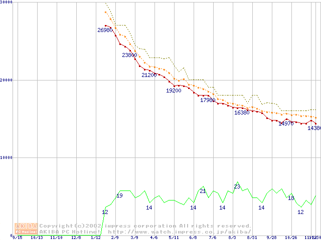 MKシリーズ (9.5mm,4200rpm,2MB,FDB,20GB/Platter)の最安値推移