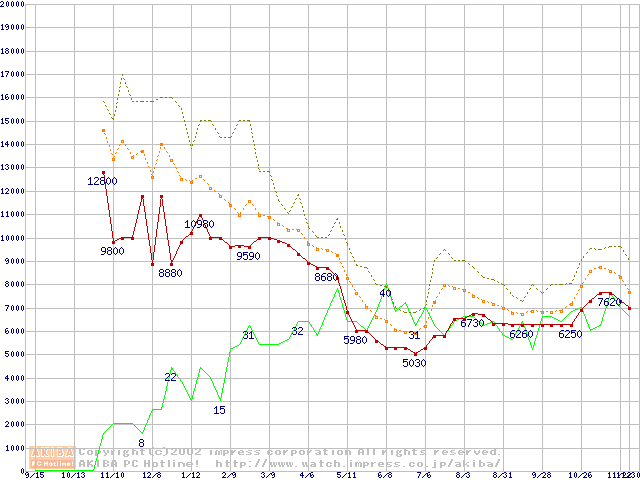 PC2700(DDR333) DDR SDRAM DIMMの最安値推移
