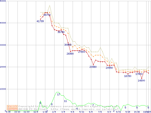 Socket A (OPGA,FSB 266MHz,L2 256KB,Palomino)の最安値推移