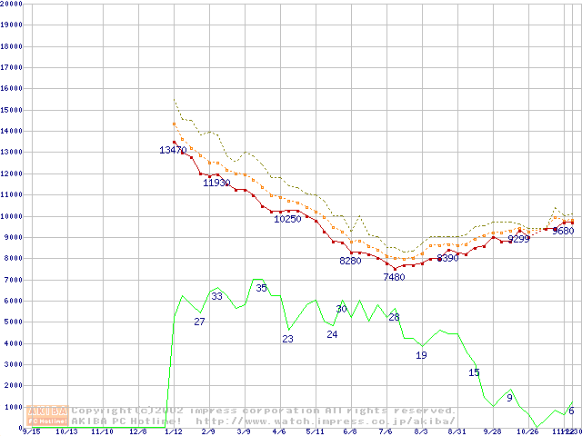 Deskstar 120GXP (7200rpm,2MB,UltraATA/100,BB)の最安値推移