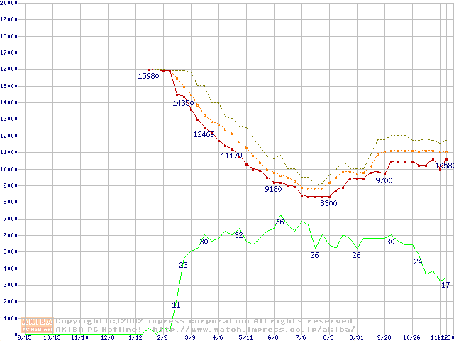 Deskstar 120GXP (7200rpm,2MB,UltraATA/100,BB)の最安値推移