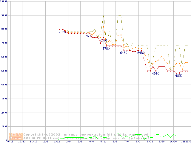 Socket 370・FSB 100MHzの最安値推移