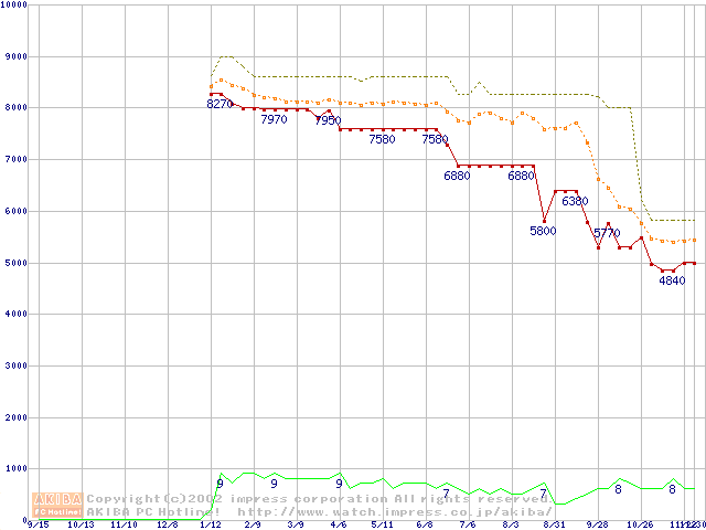 Socket 370 (PGA,FSB 100MHz,L2 64KB)の最安値推移