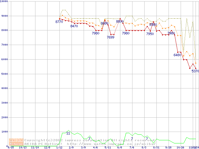 Socket 370 (PGA,FSB 133MHz,L2 64KB)の最安値推移