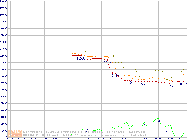 MHRシリーズ (9.5mm,4200rpm,UltraATA/100,2MB,FDB,20GB/Platter)の最安値推移