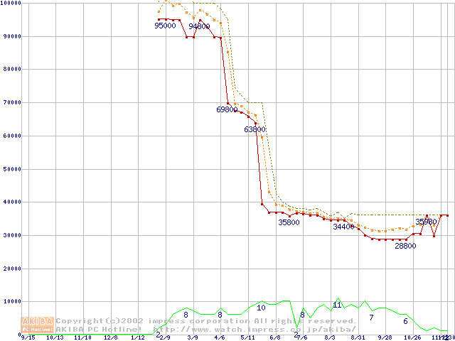 Socket 603 (micro-PGA,L2 512KB,Hyper-Threading,Prestonia)の最安値推移