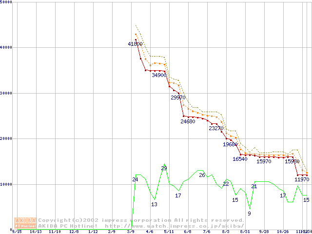 Athlon XP 2100+ (1.73GHz) リテールパッケージの価格推移