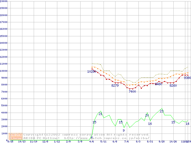 Deskstar 120GXP (7200rpm,2MB,UltraATA/100,BB)の最安値推移
