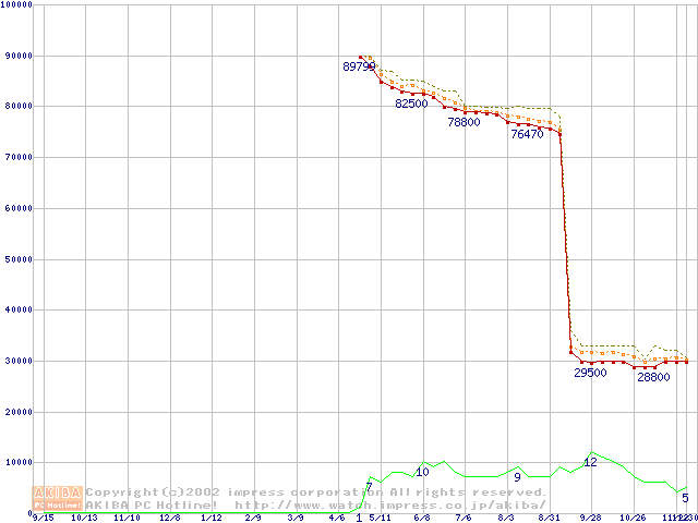 Socket 603 (micro-PGA,L2 512KB,Hyper-Threading,Prestonia)の最安値推移