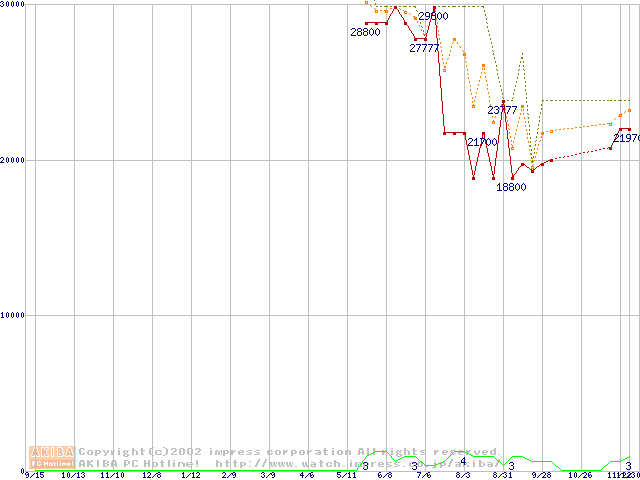 PC2700(DDR333) DDR SDRAM DIMM ECC対応 Registeredタイプの最安値推移