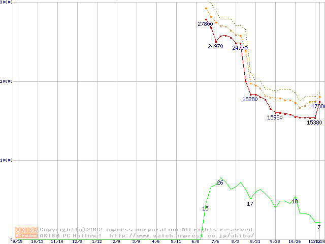 Socket A (OPGA,FSB 266MHz,L2 256KB,Thoroughbred)の最安値推移
