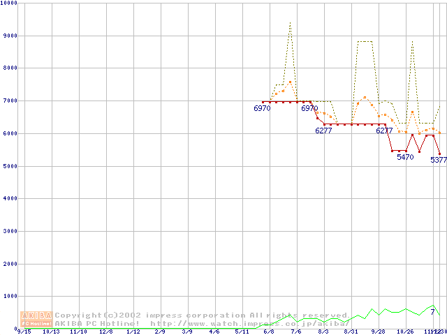 PC800-40 DRDRAM RIMM ECC対応の最安値推移