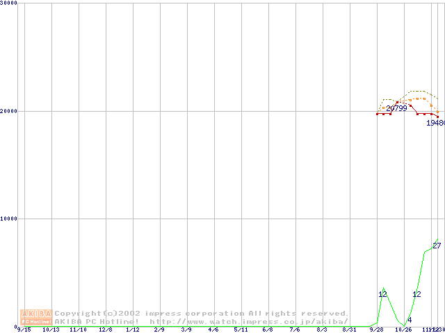 HDD主要製品(最安値1万5千円~2万円未満)の最安値推移