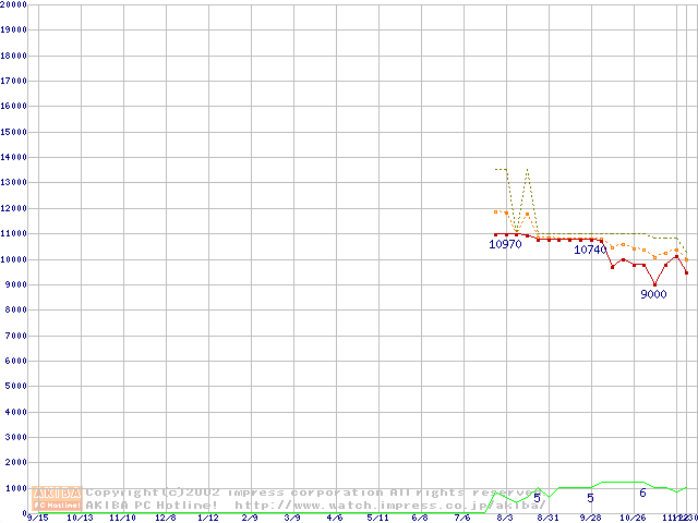 DK23DAシリーズ (9.5mm,4200rpm,FDB,20GB/Platter)の最安値推移