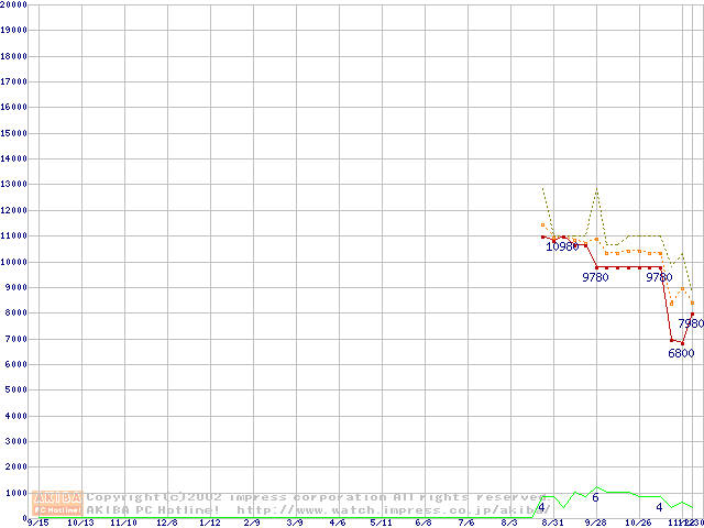 Socket A (OPGA,FSB 200MHz,L2 256KB)の最安値推移
