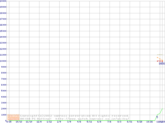 MHSシリーズ (9.5mm,4200rpm,UltraATA/100,2MB,FDB,30GB/Platter,FDB)の最安値推移