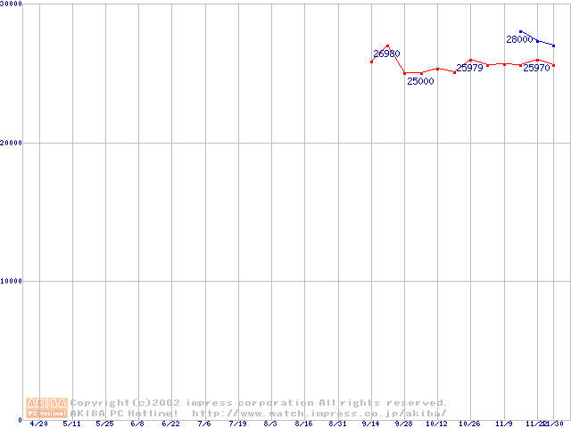 | Socket A (OPGA,FSB 266MHz,L2 256KB,Thoroughbred)の最安値推移 |