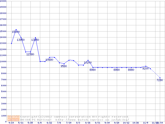 | Socket A (PGA,FSB 200MHz,L2 256KB,Palomino)の最安値推移 |