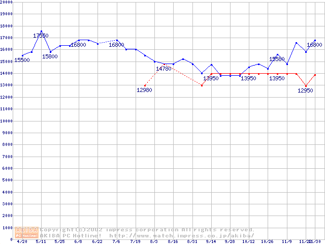 | [↓次グラフ]: | Slot 1 (SECC2,FSB 100MHz,L2 256KB)の最安値推移 |