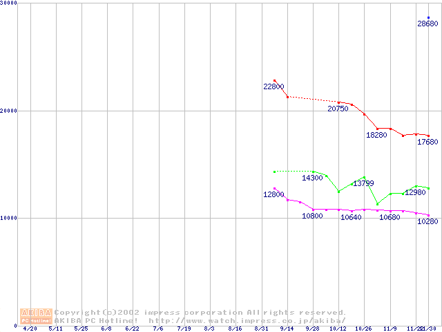 | [↑前グラフ]: | DiamondMax Plus 9 (7200rpm,8MB,UltraATA/133,FDB)の最安値推移 |