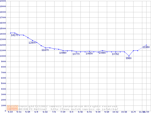 | [↓次グラフ]: | DiamondMax D540X-4K (5400rpm,UltraATA/100,40GB/Platter)の最安値推移 |