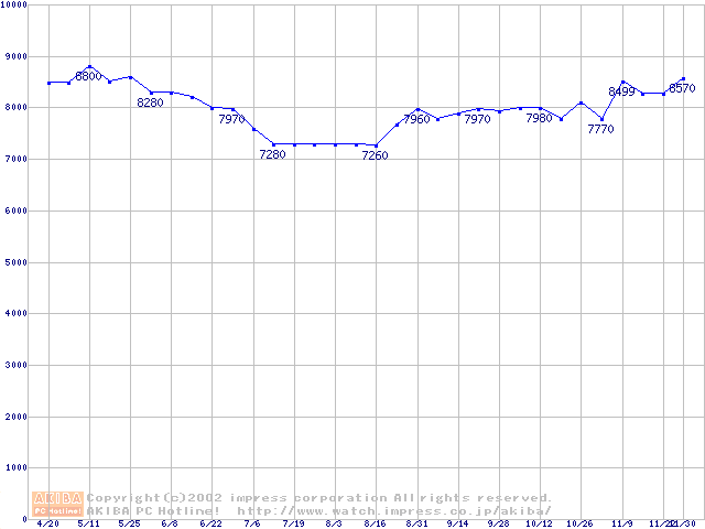 | [↓次グラフ]: | U5 (5400rpm,UltraATA/100 512KB)の最安値推移 |