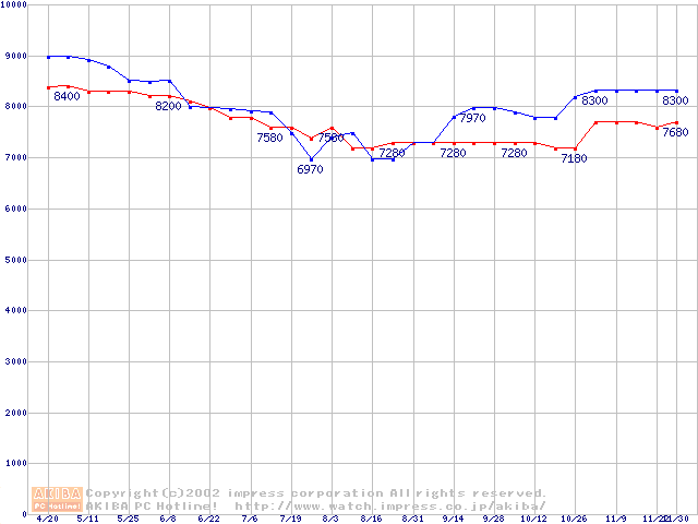 | [↑前グラフ]: | WD Caviar (5400rpm,UltraATA/100,2MB)の最安値推移 |