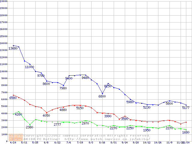 | [↑前グラフ]: | PC133 SDRAM DIMM CasLatency=3の最安値推移 |
