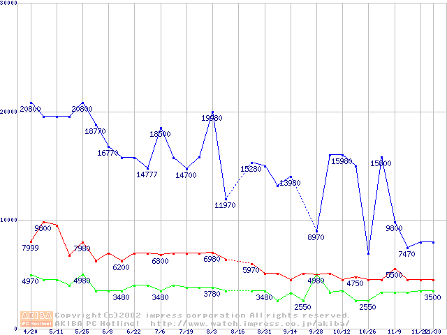 | [↑前グラフ]: | PC133 SDRAM DIMM CasLatency=2の最安値推移 |