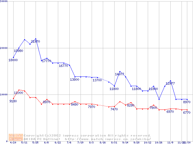 | [↓次グラフ]: | PC100 SDRAM DIMM CasLatency=2の最安値推移 |
