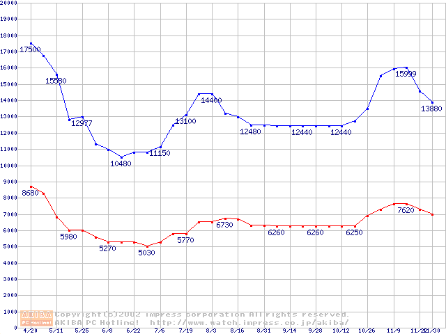 | [↓次グラフ]: | PC3200(DDR400) DDR SDRAM DIMMの最安値推移 |