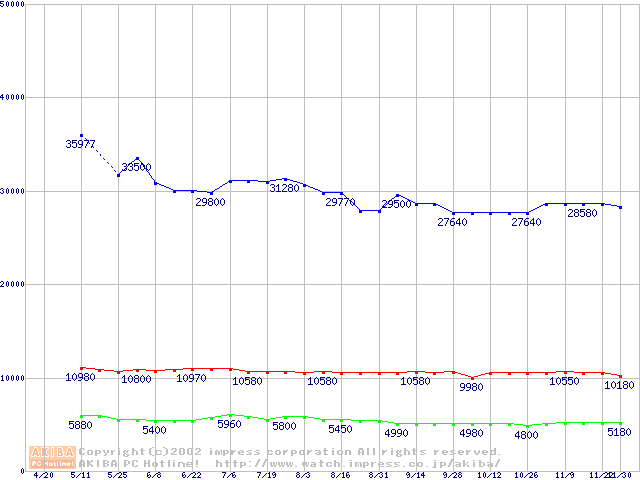 | [↓次グラフ]: | PC800-45 DRDRAM RIMMの最安値推移 |