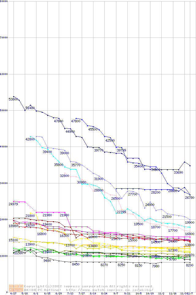 2.5インチHDD主要製品の最安値推移