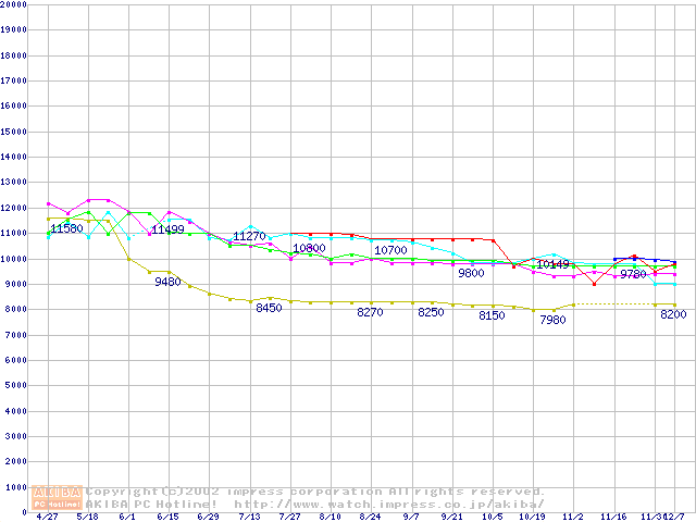 | [↑前グラフ]: | 2.5インチHDD主要製品の最安値推移 |