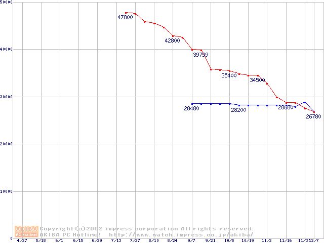 | [↓次グラフ]: | 2.5インチHDD主要製品(最安値3万円以上)の最安値推移 |