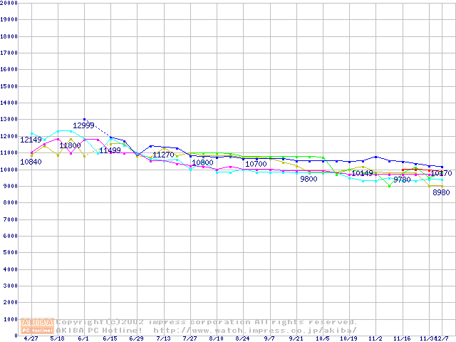 | [↑前グラフ]: | 2.5インチHDD 10GB~20GB未満(9.5mm厚)の最安値推移 |