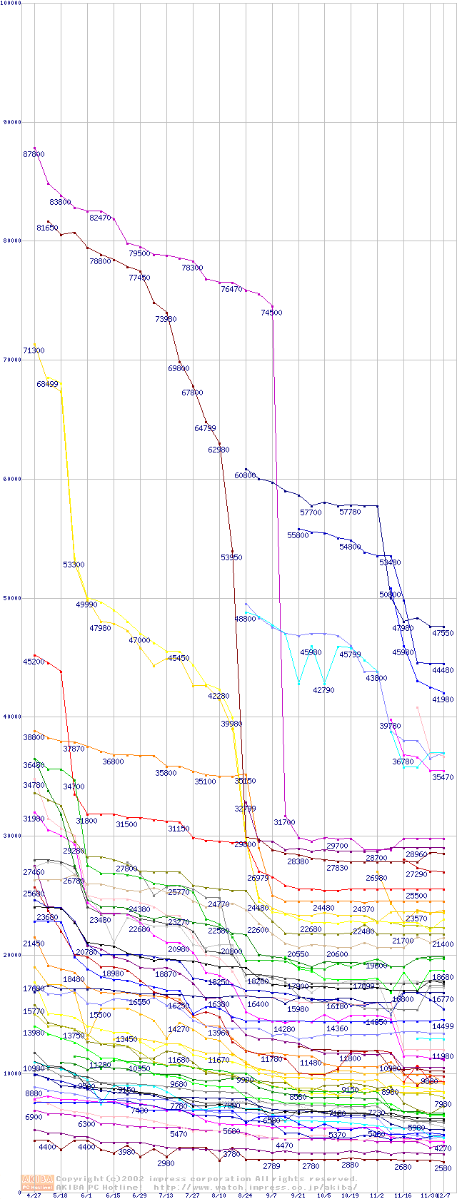CPU主要製品の最安値推移