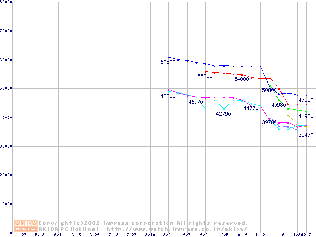 CPU主要製品(最安値2万円~3万円未満)の最安値推移
