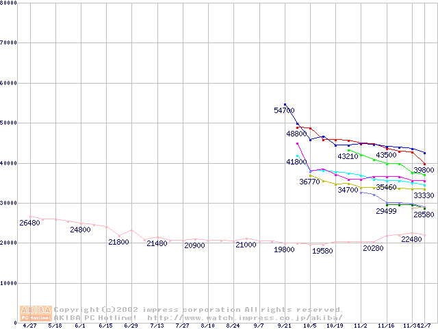 HDD主要製品(最安値1万5千円~2万円未満)の最安値推移