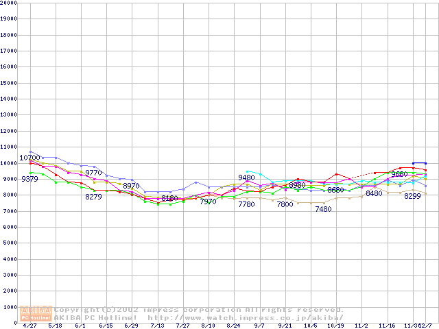 | [↑前グラフ]: | HDD 30GB~40GB未満(7200rpmクラス)の最安値推移 |